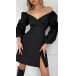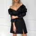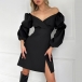 Sexy Sweetheart Neckline Puff Long Sleeve High-rise Side Slit Black Dress