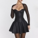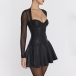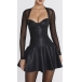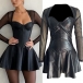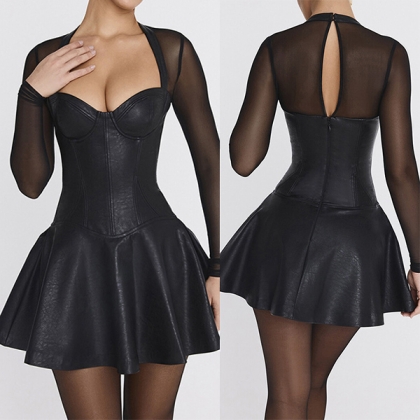 This daring and stylish mini dress features a sultry sweetheart neckline that accentuates your décolletage, while the gauze spliced artificial leather PU fabric adds a touch of drama and sophistication. The ruffle hemline detail adds movement and flair to the dress, creating a chic and trendy silhouette. Perfect for a night out or a special occasion.