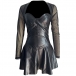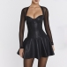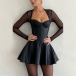 Sexy Sweetheart Neckline Ruffle Hemline Gauze Spliced Artificial Leather PU Mini Dress