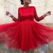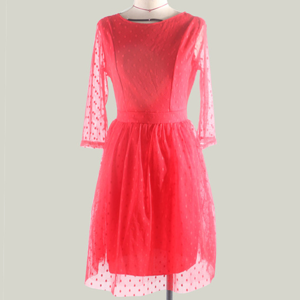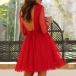 This gorgeous party dress is sure to turn heads! The fit and flare silhouette is flattering on any body type, and the sexy Swiss-dot fabric is both unique and elegant. The backless design is both daring and sophisticated, making this dress perfect for any special occasion.