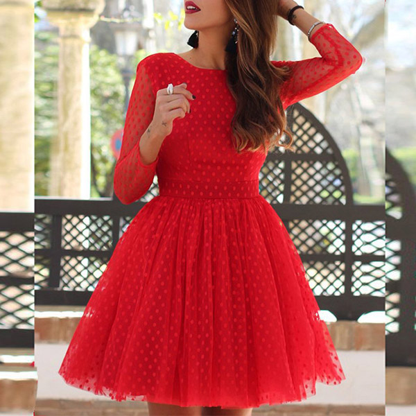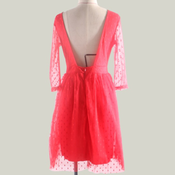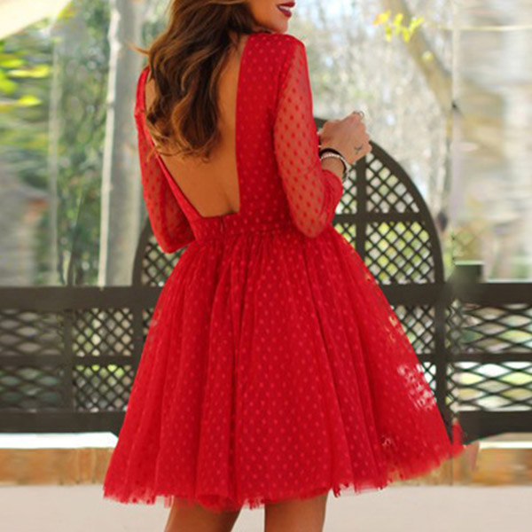 Sexy Swiss-dot Backless Fit & Flare Party Dress