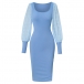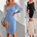 Sexy Swiss-dot Long Sleeve Round Neck Slit Bodycon Knitted Dress