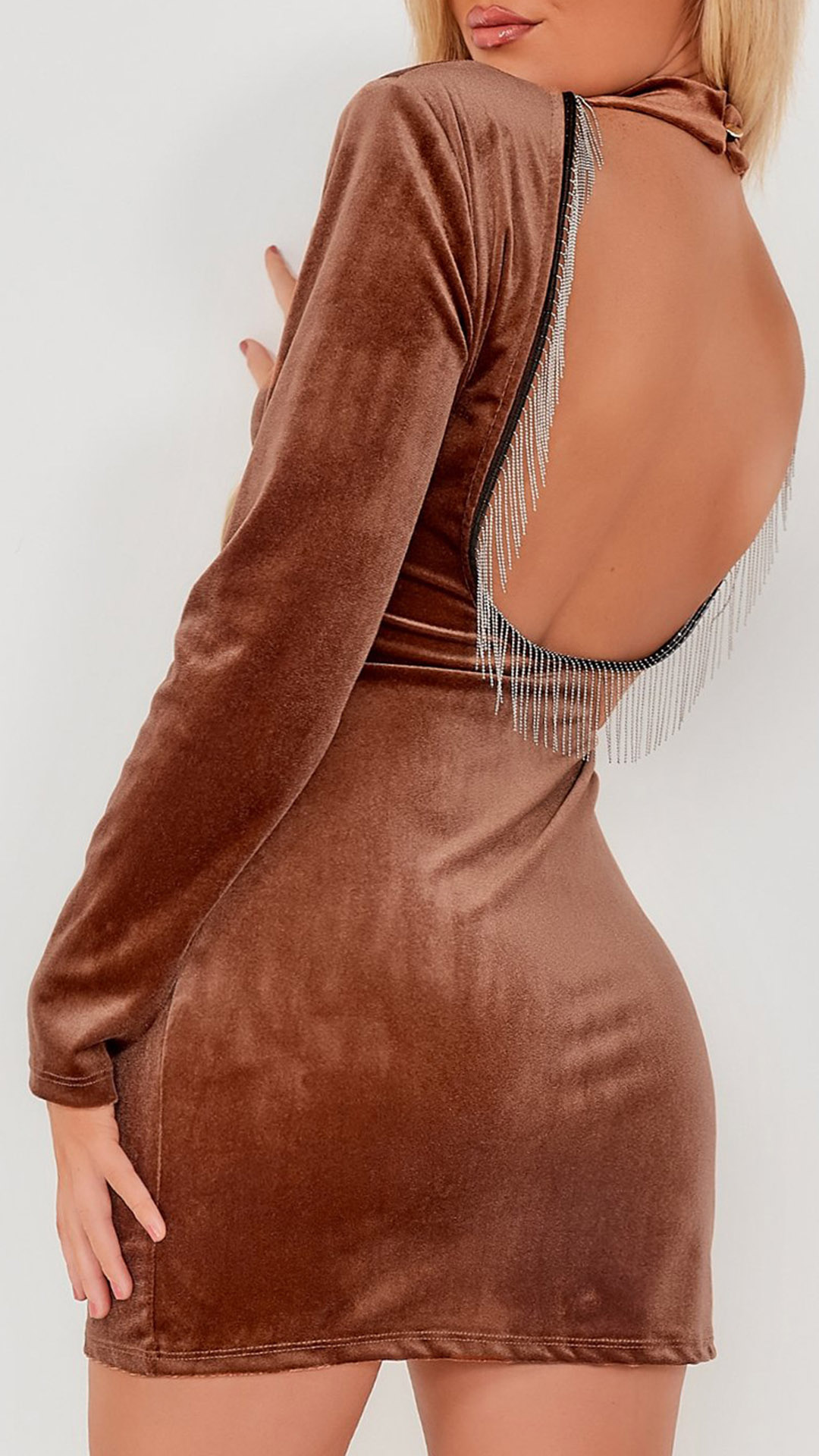 It is an easy thing to portray your alluring side if you have this dress in your team. The backless and tassel details at the back side make this piece look so distinctive and attractive,and the tight silhouette design will portray your seductive curve. Dress it up with your sexy heels for a stunning and beautiful look!