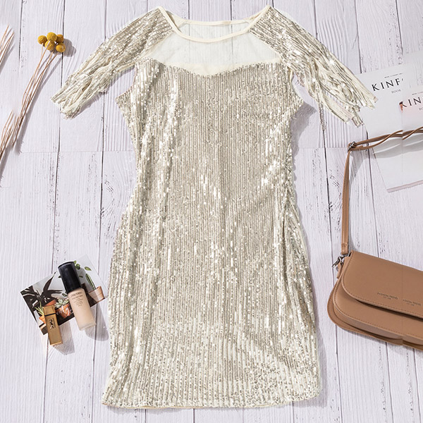 When stepping into a party with this dress,you can easily stand out in the crowd. The sequin details make this piece look so shinning and attractive,while the tassel details at the sleeve part will make this piece look more distinctive. Dress it up with your sexy heels and elegant clutch,you can't be more amazing and charming!
