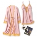 Sexy Thin Long Sleeve Lace Spliced Robe + Backless V-neck Sling Nightdress Two Piece Set