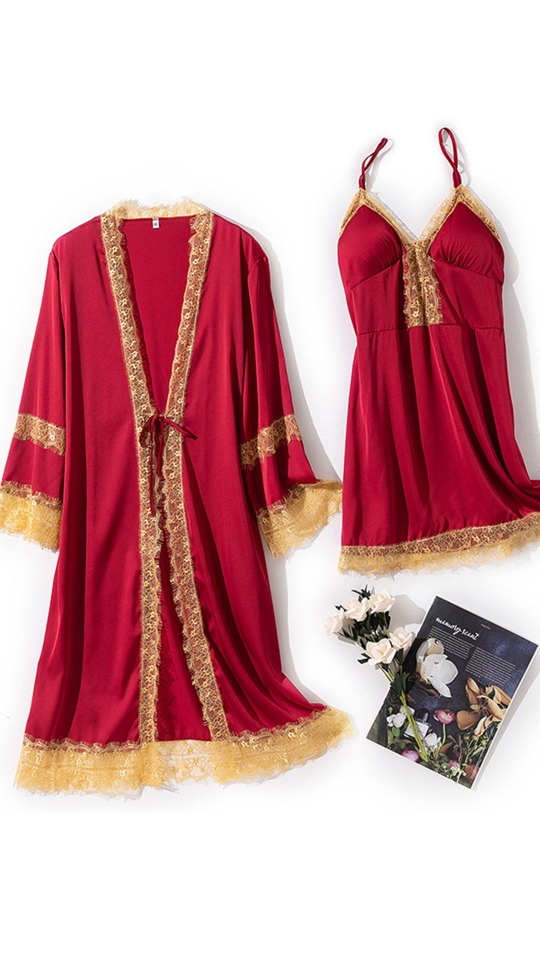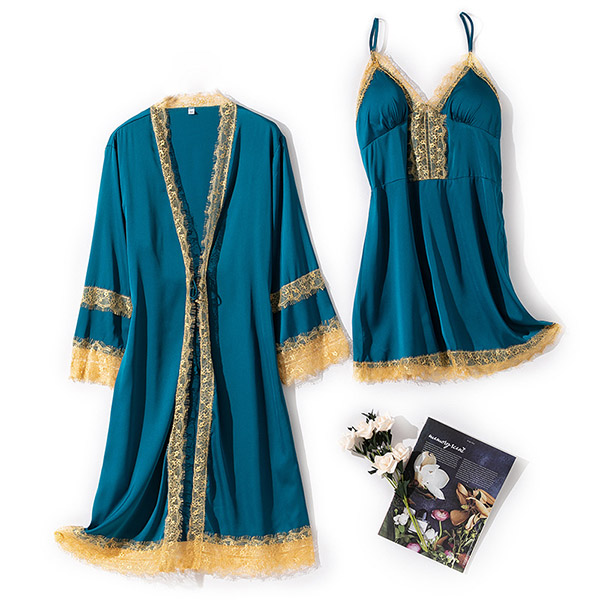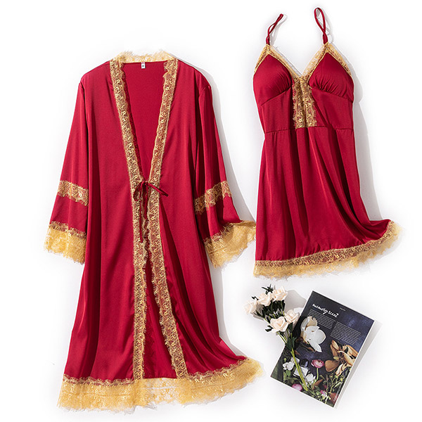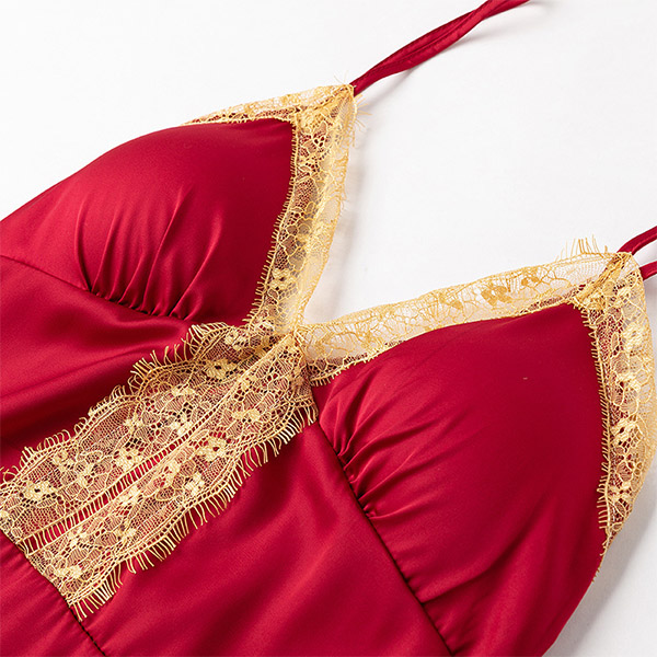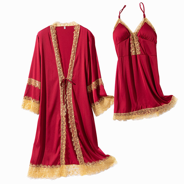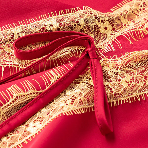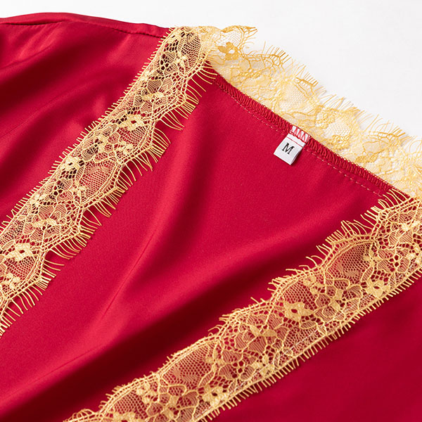 When you drink red wine and sit on the balcony to enjoy the night, you need a nightwear like this. This is a two-piece suit,including a long sleeve robe and a backless v-neck sling dress. The cuffs, chest and hem is deisgned with lace details,which can better highlight your charming feminine appeal. Why don't you try if you don't have a nightdress like this in your wardrobe?