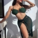 Sexy Three-piece Bikini Set consist of a Underwire Bikini Top+Bikini Bottoms+Swim Cover-Up Skirt