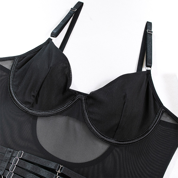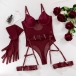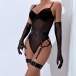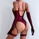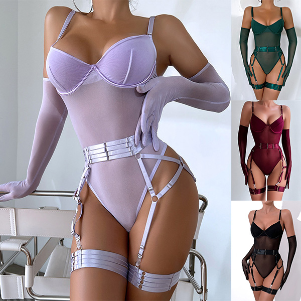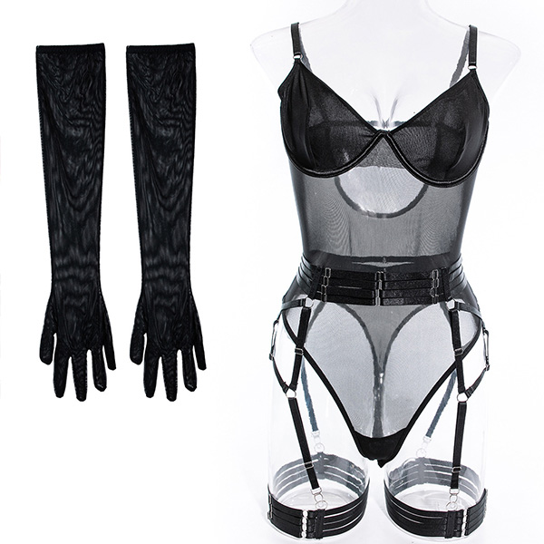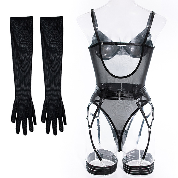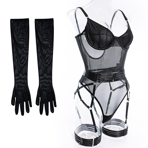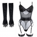 Sexy Three-piece Lingerie Set Consist of Semi-through Lingerie Bodysuit and Gloves