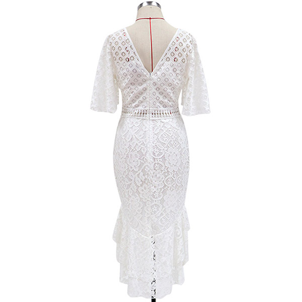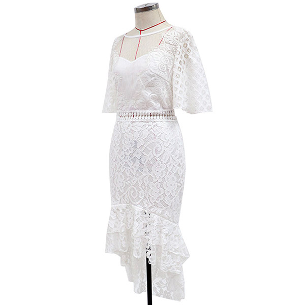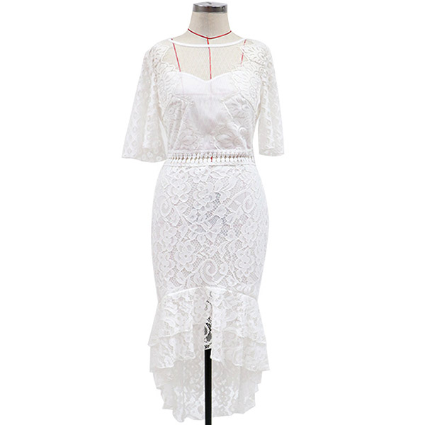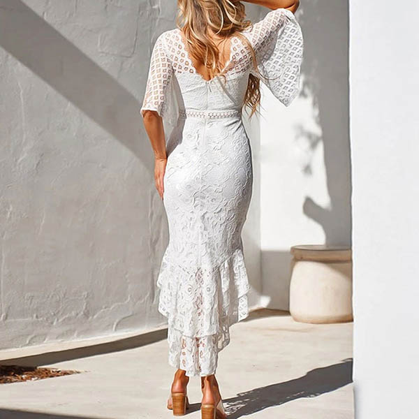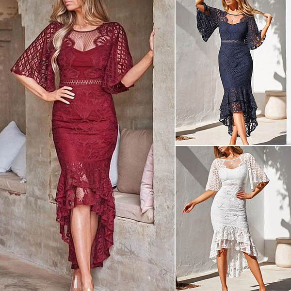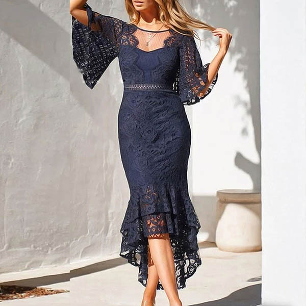 Sexy Trumpet Sleeve Round Neck Fishtail Hem Lace Dress