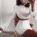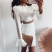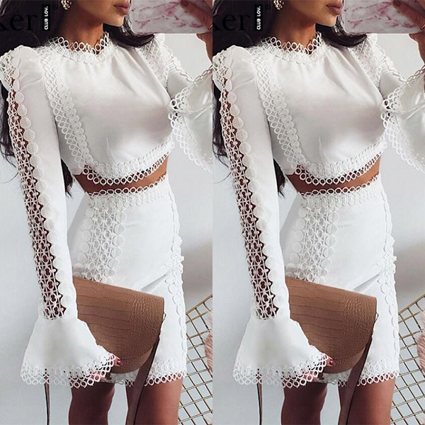 When you wanna exude your sexy and flirty side,then you can dress yourself up with this two-piece set. Solid color style,including a trumpet sleeve round neck crop top and a high waist skirt,this two-piece set is a good weapon to exude your seductive curve. Moreover,the lace spliced details will further enhance its charm. So why not take interest in this set?