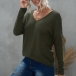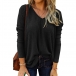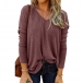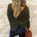Sexy Twisted Backless V-neck Long Sleeve Solid Color Knit Top