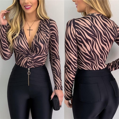 When your dress yourself up with this bodysuit,your seductive curve can have a full display. The stripe element design makes this piece look so stylish and attractive,while the twisted v-neck design can easily enhance your charming feminine appeal. You can simply matching with your high waist pants to achieve for a flirty look!