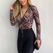 Sexy Twisted V-neck Long Sleeve Slim Fit Striped Bodysuit