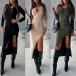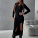 This set is designed to make a bold statement and turn heads wherever you go. The lace-up V-neck shirt adds a touch of allure and femininity. The matching slit skirt adds a dose of sexiness and sophistication. Crafted with high-quality materials, this two-piece set ensures comfort and durability.