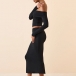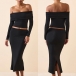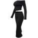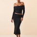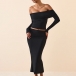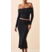 This set features an off-the-shoulder crop shirt that showcases your shoulders and collarbone, while the back slit skirt adds a touch of sexiness and elegance. Crafted from high-quality fabric with meticulous attention to detail, this two-piece set is designed to be comfortable, stylish, and figure-enhancing.