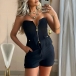 This alluring two-piece set consists of a strapless zipper shirt and matching shorts, creating a bold and sultry ensemble perfect for those seeking a head-turning look. Pairing the ensemble with sky-high heels or strappy sandals can elongate the legs and create a leggy, show-stopping silhouette.