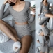 Sexy U-neck Long Sleeve Crop Top + Shorts Two-piece Set