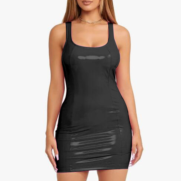 Your seductive appeal can have a full display when you wear this PU leather dress. It is finished with sleeveless,U-neck and a fit silhouette design,this dress can perfectly showcase your slender figure. No matter when and where you are,you can easily be the focus in this dress.