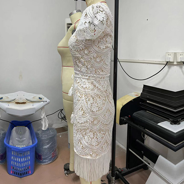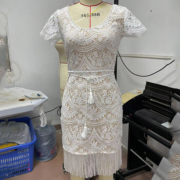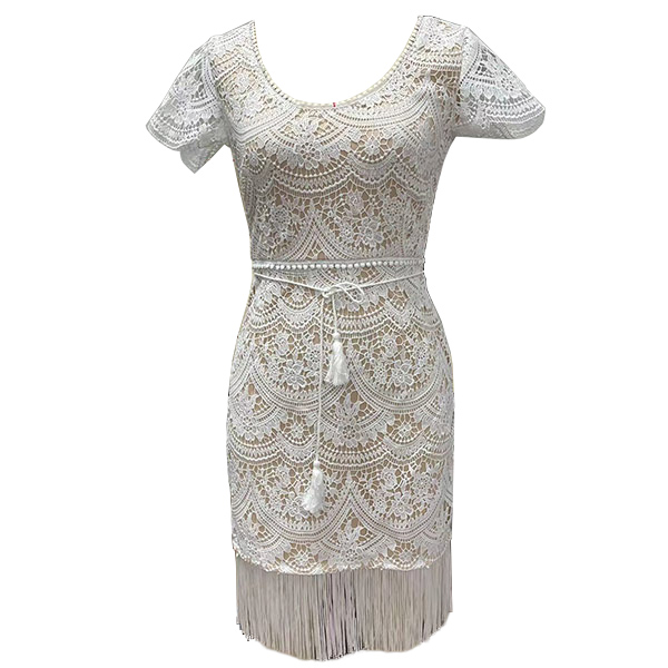 Sexy U-shape Neckline Cap Sleeve Backless Tassel Bodycon Lace Dress