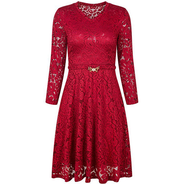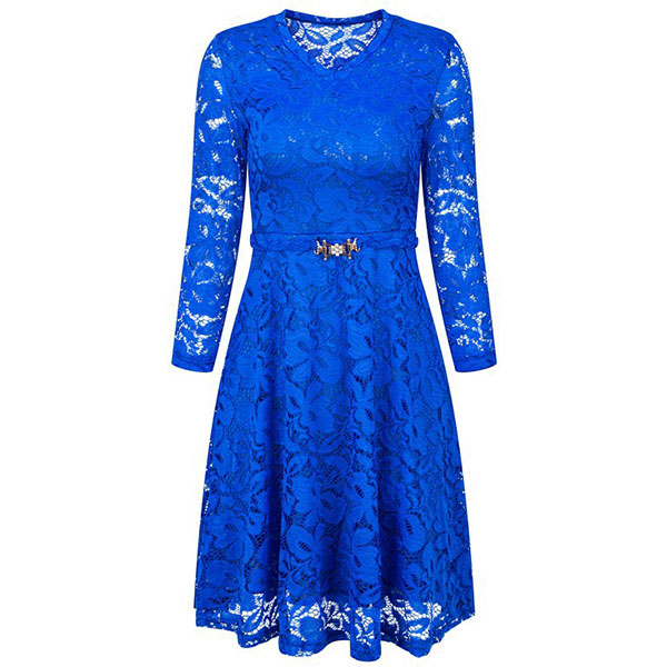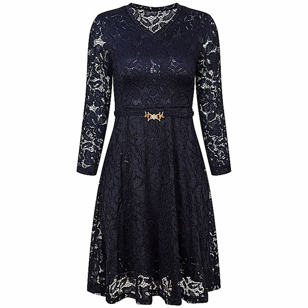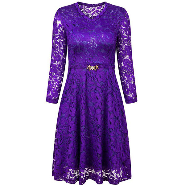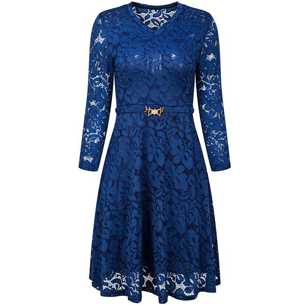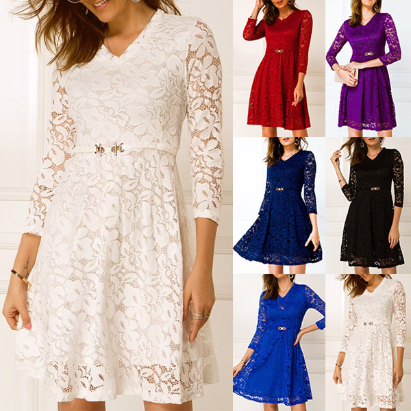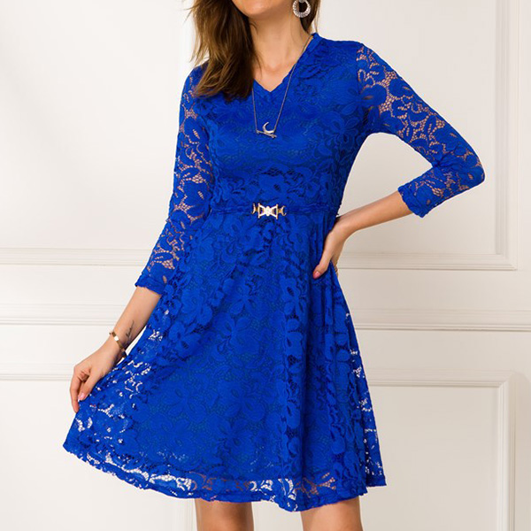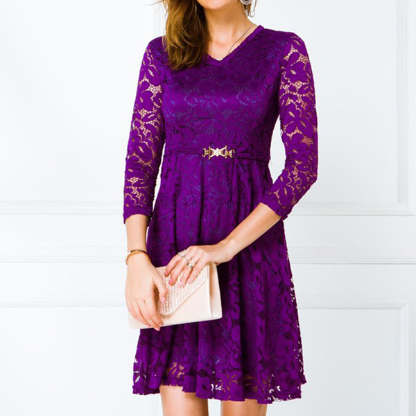 When you wanna exude your charming feminine appeal,then this lace dress would be a wise choice. Solid color style,finished with 3/4 sleeve.v-neck and high waist design,this wonderful piece not only can showcase your slender figure,but also can make you look sassy and flirty.