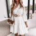 Still worrying about what to wear for your night dating and weekend gatherings? All your worries can be solved with this dress. The v-neck,3/4 trumpet sleeve and lace spliced details make this piece full of sassy and feminine sense. What you need to do is just matching with your favourite heels to achieve for a beautiful appearance.
