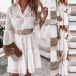 Sexy V-neck 3/4 Trunpet Sleeve Lace Spliced Dress
