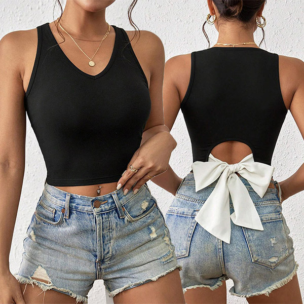 Sexy V-neck Back Bowknot Sleeveless Crop Top
