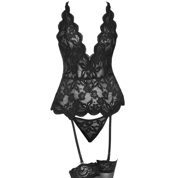 Sexy V-neck Backless Lace Two-piece Lingerie Set