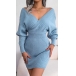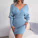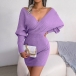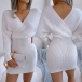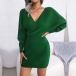 Sexy V-neck Batwing Sleeve Cinch Waist Knitted Bodycon Sweater Dress