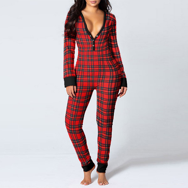 For your leisure home time,you can trust in this jumpsuit to give you an utmost comfort with its soft and breathable fabric. Its chic and eye-catching printed details can help you catch more eyes. The butt flap design makes it more convenient,while the deep v-neck design can exude your sexy and flirty side. Finished with long sleeve and a fit silhouette,this piece makes it suitable for indoor and outdoor wearing.
