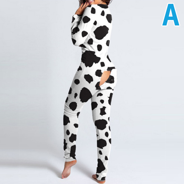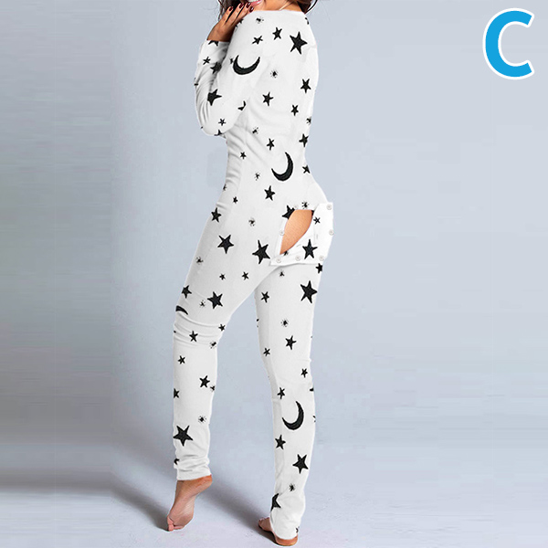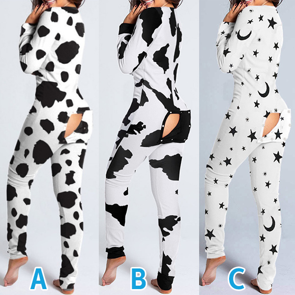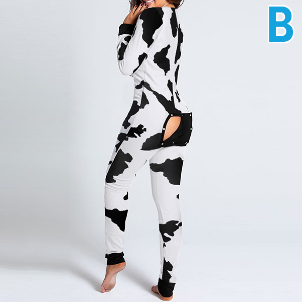 Sexy V-neck Butt Flap Slim Fit Printed Home-wear Jumpsuit One-piece Pajama