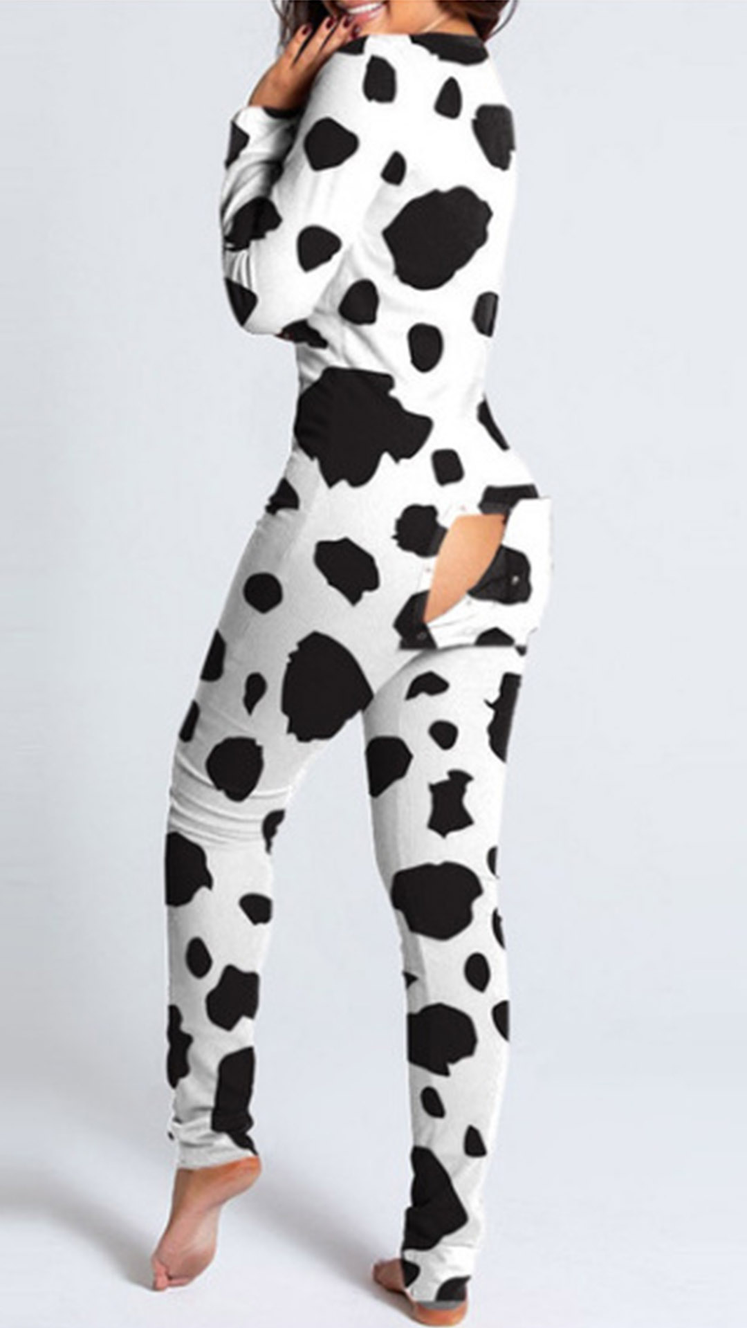 For your leisure home time,you can trust in this jumpsuit to give you an utmost comfort with its soft and breathable fabric. Its chic and eye-catching printed details can help you catch more eyes. The butt flap design makes it more convenient,while the deep v-neck design can exude your sexy and flirty side. Finished with long sleeve and a fit silhouette,this piece makes it suitable for indoor and outdoor wearing.