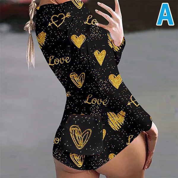 Sexy V-neck Butt Flap Slim Fit Printed Home-wear Romper One-piece Pajama