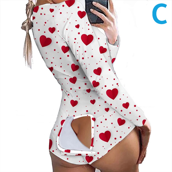 This one-piece pajama is breathable soft, skin-friendly, stretchy and comfortable to wear. Its elastane for a perfect stretch fit, soft feeling, which keeps you perfectly lovely. And the butt flap design at the hip part makes it look so chic and convenient. Just enjoy your home time with this wonderful piece.
