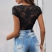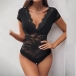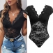 This bodysuit features a V-neckline, cap sleeves offer a chic and stylish detail, while the delicate lace fabric creates a feminine and romantic vibe. Pair it with high-waisted trousers or a skirt for a chic and polished ensemble!