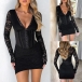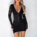 This sexy black dress features a flattering V-neck, corset style cinch waist detail and bodycon silhoutte, it is sexy and fashion. The jacquard lace fabric adds texture and dimension, creating a luxurious and elegant look. Wanna have a try?