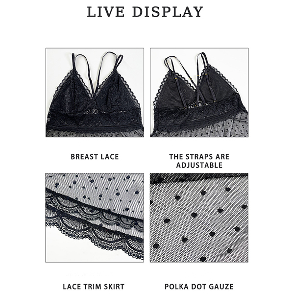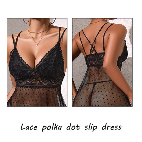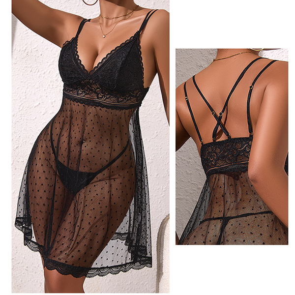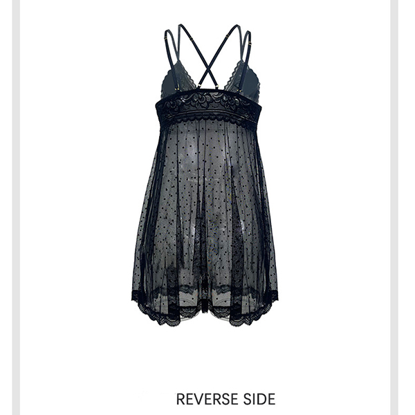 Sexy V-neck Criss-cross Backless Semi-through Lace Spliced Gauze Nightwear Dress