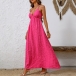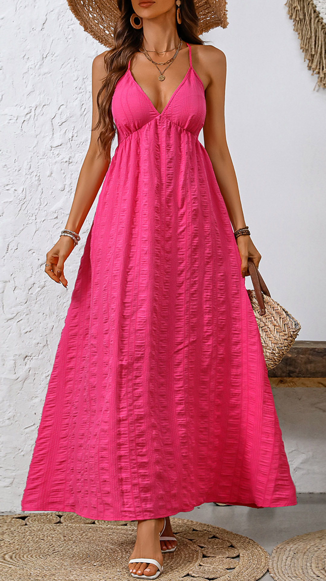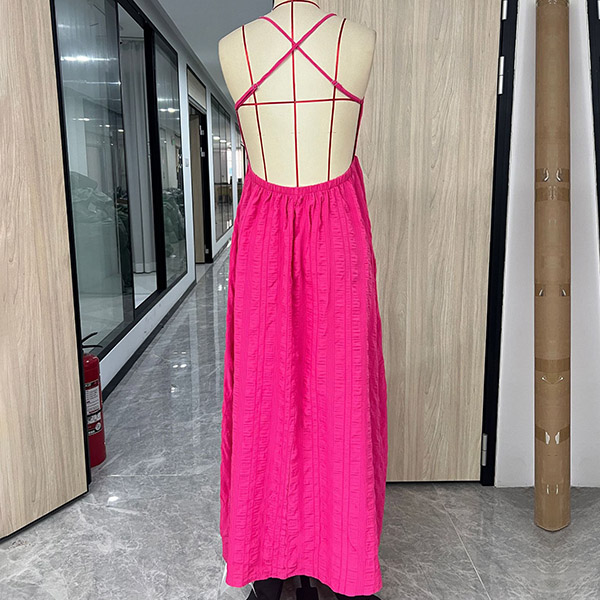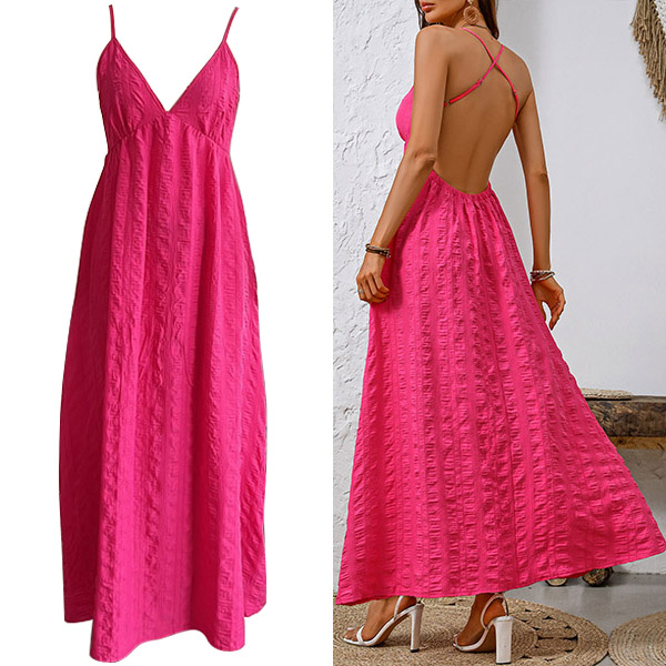 This texture maxi dress features sexy V-neckline and cross backless design creates a bold and seductive look. The texture detailing adds visual interest and dimension to the dress, creating a modern and stylish vibe. Hope you like it.