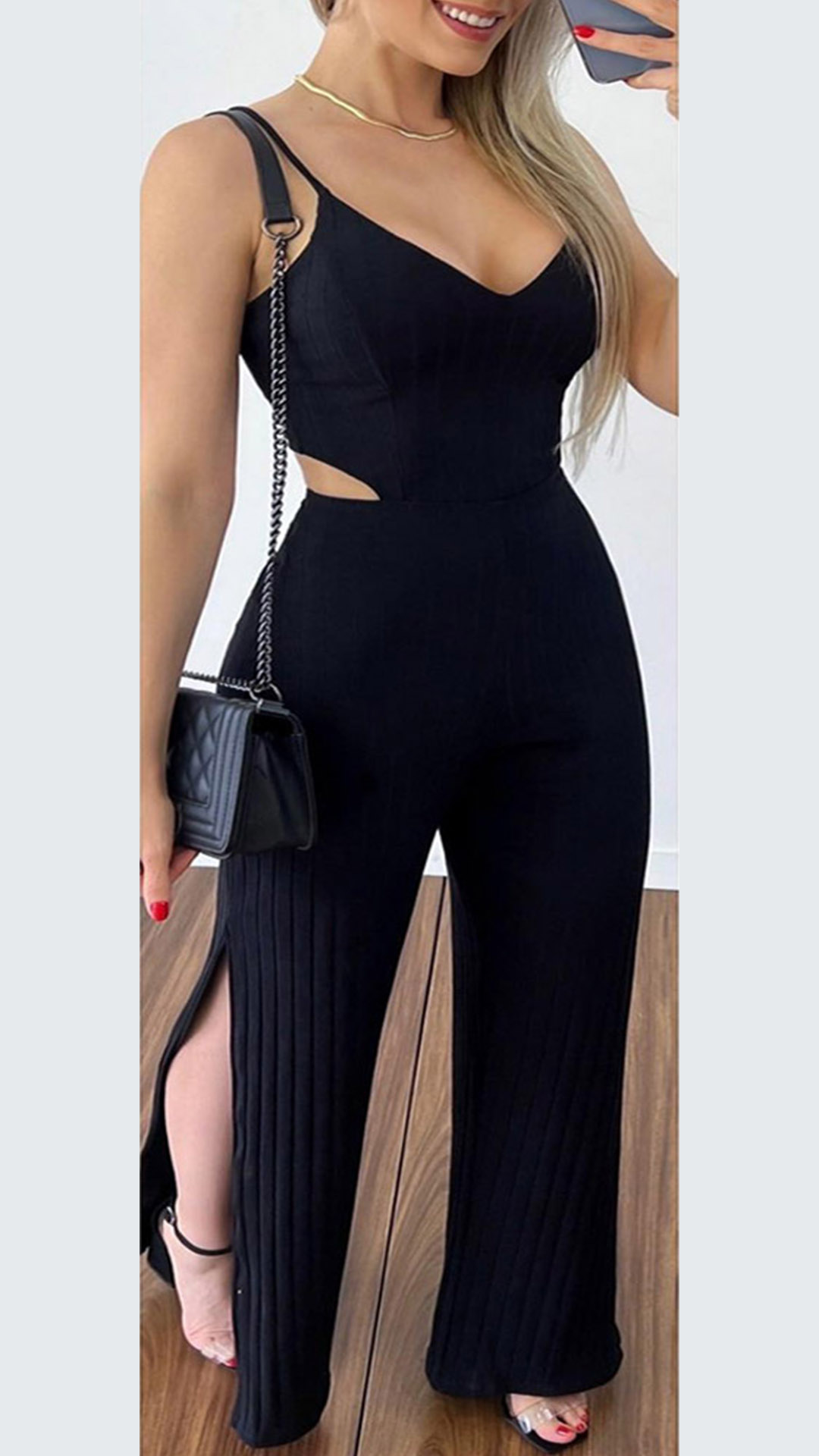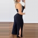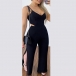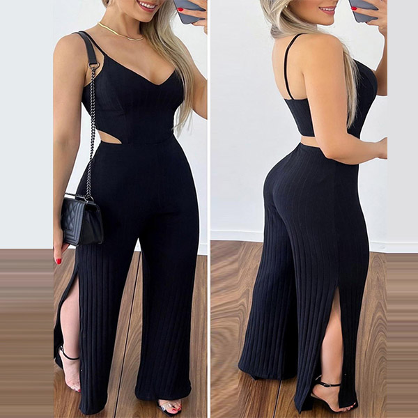 Sexy V-neck Cutout Slit Cami Black Jumpsuit
