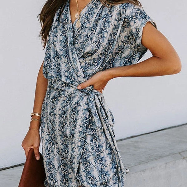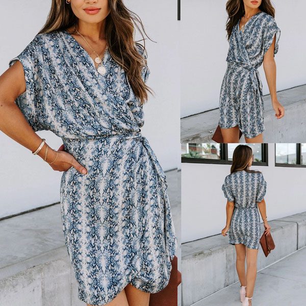 Hey,girls,you can express your stylish and charming summer style with the help of this dress. The serpentine printed details make this piece look so eye-catching,while the v-neck and dolman sleeve design will further enhance its entire charm. Meanwhile,the soft and breathable fabric can ensure you a comfortable day. So why not take interest in it?
