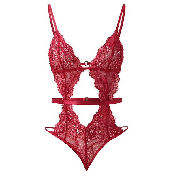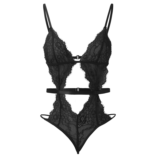 Sexy V-neck Front Cutout Backless Lace Lingerie Bodysuit