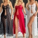 Sexy V-neck Front Slit Lace Nightwear Slip Dress