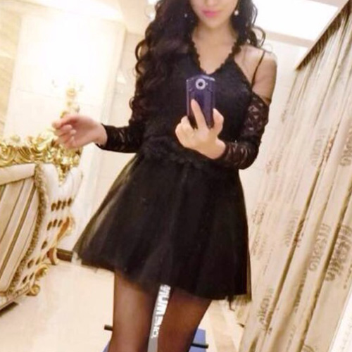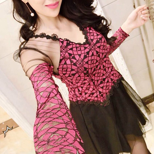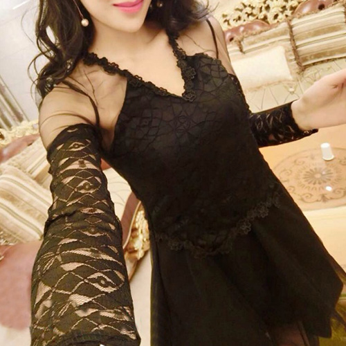 gauze and lace spliced design,filled with feminine and sexy flavor. V-neck,long sleeve and high waist