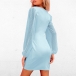 Looking for a proper dress for your fancy events? Then you can make your eyes focused on this piece. Solid color tone design makes it look simple yet generous. Finished with gauze long sleeve,v-neck,an irregular hem and a fit silhouette,this dress not only can exude your flirty side,but also can showcase your slender figure.