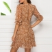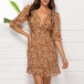 Sexy V-neck Half Sleeve Ruffle Hem Printed Dress