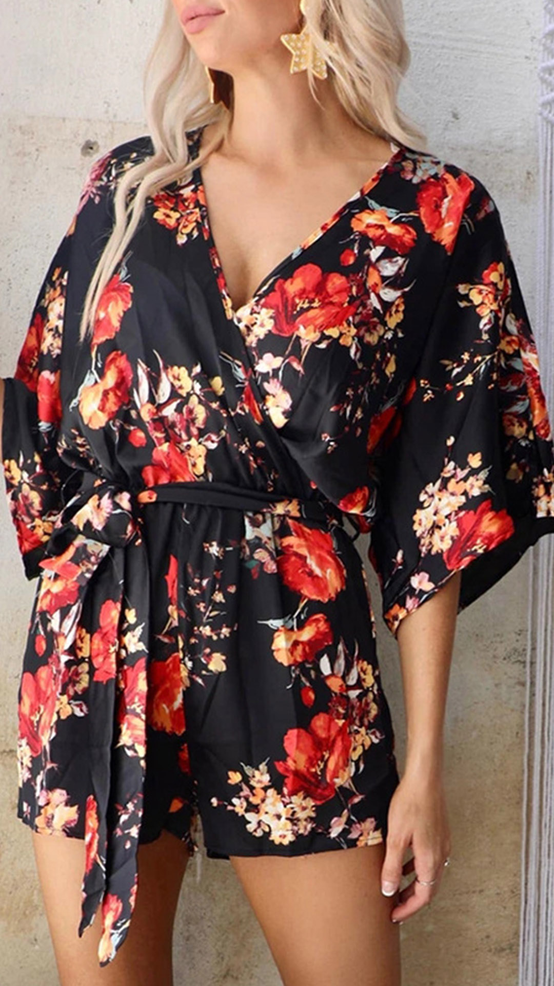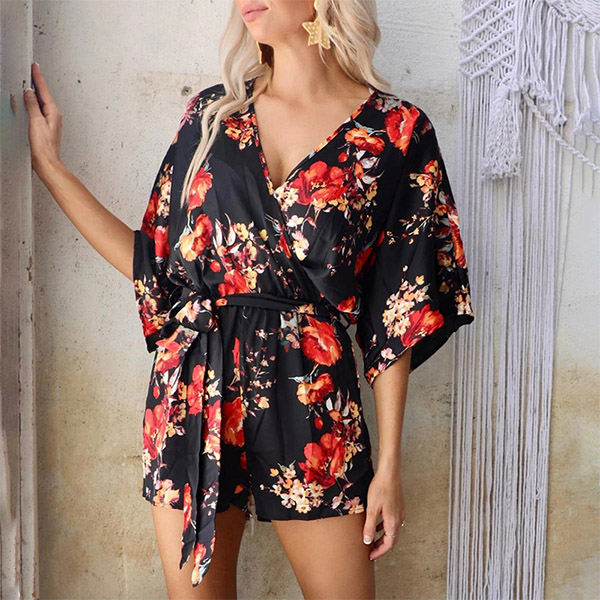 When you are tired of the dresses and t-shirts,then you can just just have a try different style outfit such as this romper. Its printed details make this piece look so eye-catching. Finished with half sleeve,tie-belt high waist and v-neck design,this romper not only can exude your feminine appeal,but also can showcase your slender figure.