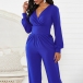 Sexy V-neck High Waist Solid Color Long Sleeve Jumpsuit