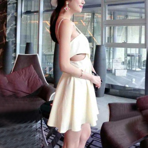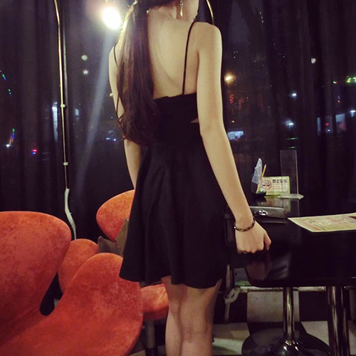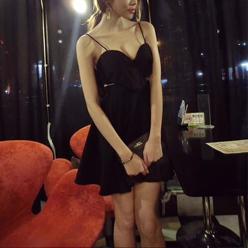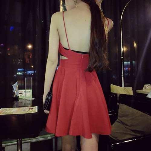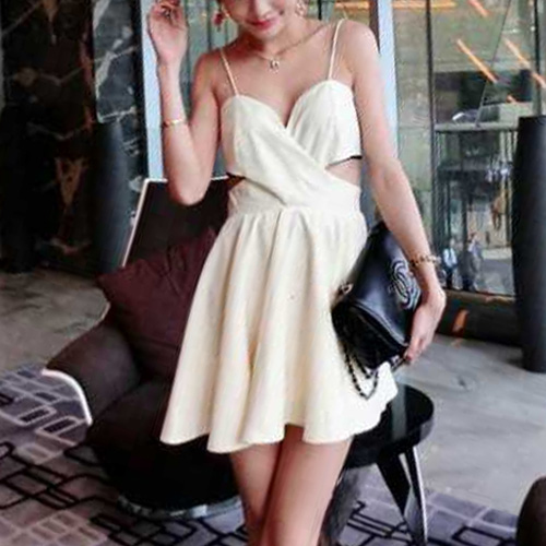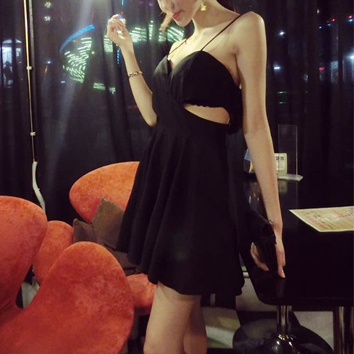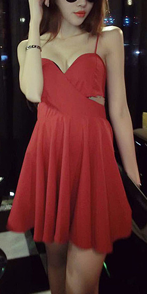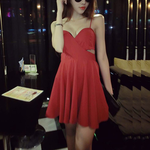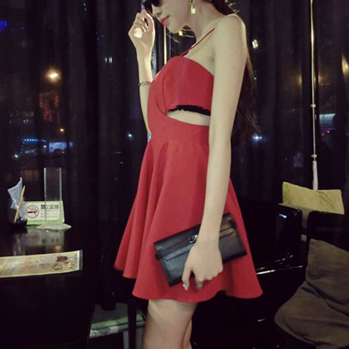 Sexy V-neck Hollow Out Solid Color Sling Dress