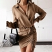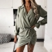 Sexy V-neck Irregular Drawstring Hem Long Sleeve Solid Color Dress
