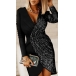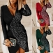 Sexy V-neck Irregular Hem Long Sleeve Slim Fit Sequin Spliced Party Dress